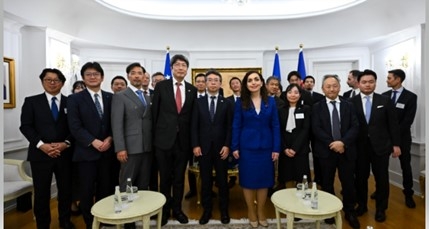 In addition, the mission and Ambassador IWAMA paid a courtesy call on President Osmani. To investigate the business climate in Kosovo, they also inspected key sites, including the "Kosova A and B" power plants, the "Drenas Industrial Park" and the "Rec-Kos" waste treatment plant.